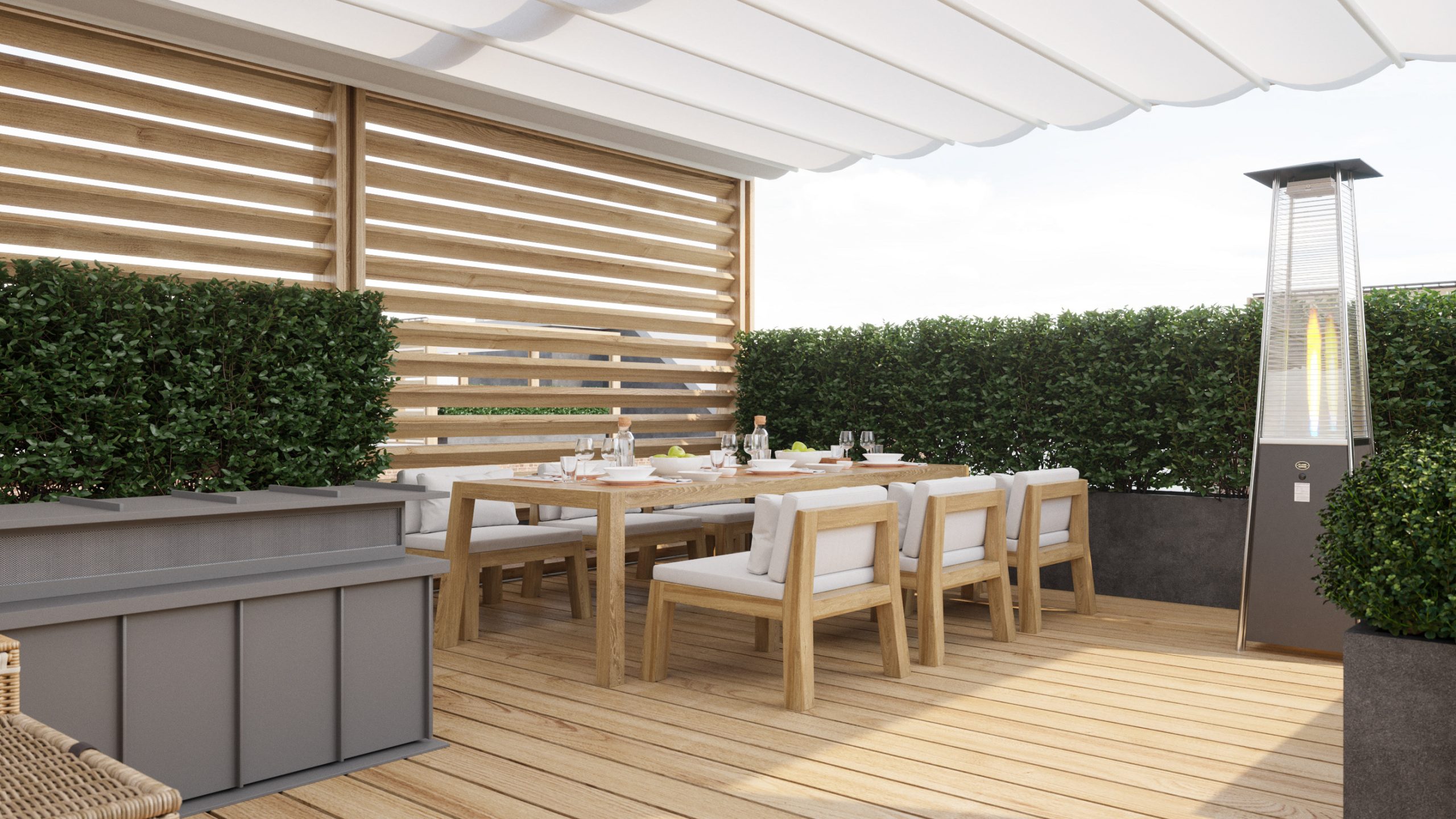 - Vigas y listones (techo sol y sombra)